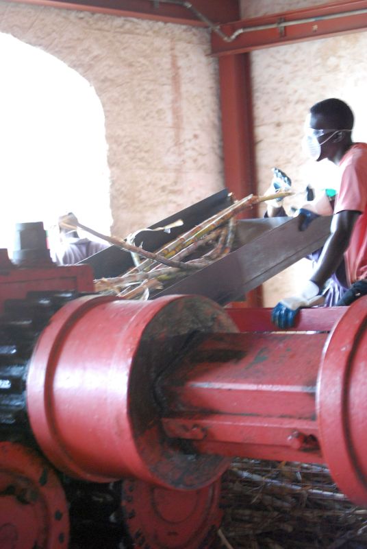 Feeding the cane crusher St. Nicholas Abbey, Barbados